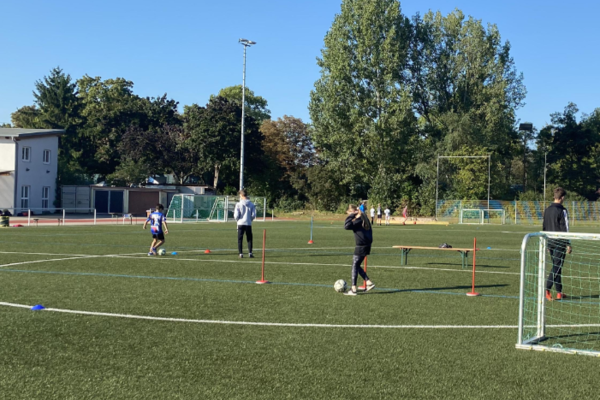Endlich war es wieder soweit: Mit Hilfe der Teilnahme am Wettbewerb Schulsportstafette im Rahmen der Stiftung "Jugend trainiert für Olympia" konnte wieder aktiv Fußball gespielt werden. Dieses Jahr nicht in Form von Auswahlmannschaften gegen andere Schulen, sondern durch das Erwerben eines Fußball-Abzeichens, welches Schülerinnen und Schüler erhalten konnten, indem sie typische Fußballstationen durchlaufen und meistern durften. Stationen hierbei sahen Dribbling, Passspiel, Torschuss, Kopfball und Flanken vor. Die Schülerinnen und Schüler des Feudenheim-Gymnasiums haben dies bei Sonnenschein und tollen Bedingungen auf dem Gelände der DJK Feudenheim mit Bravour und viel Spaß absolviert, wodurch zahlreiche Abzeichen mit der Wertung Gold verliehen werden konnten. Gratulation auf diesem Wege an alle Teilnehmerinnen und Teilnehmer.