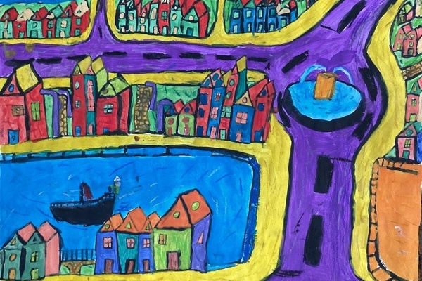 Meine Stadt – Expressionistische MalereiIm Kunstunterricht der 7a wurde eine beeindruckende Umsetzung expressionistischer Malerei geschaffen, inspiriert von den Künstlerinnen und Künstlern der Gruppe „Die Brücke“. Die Brücke, auch „KG Brücke“ genannt, war eine Künstlergruppe, die als bedeutender Vertreter des Expressionismus und als Wegbereiter der klassischen Moderne gilt.