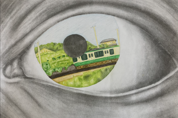 Unter den vielfältigen Interpretationen sticht besonders Sophie Niemietz Arbeit hervor: Ihr gelang es in bemerkenswerter Weise, Magrittes Prinzip weiterzuentwickeln. In ihrer Arbeit verschmelzen unerwartete Bildwelten mit technischer Präzision zu einem Werk, das die ursprüngliche Idee des "falschen Spiegels" aufgreift und gleichzeitig in eine zeitgenössische künstlerische Sprache übersetzt. Die dynamische Positionierung der Iris unterstreicht die Geschwindigkeit des fahrenden Zuges und erzeugt die faszinierende Illusion, als breche dieser aus dem Bildraum heraus.