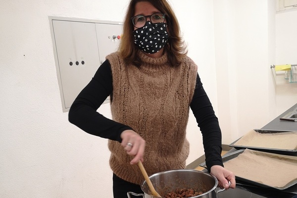 Dehydrierte Saccharose umhüllt die Samen von Amygdalus communis L. – kurz:Der Chemie LK erforscht im Unterricht die Wunder der Chemie in der Küche und bereitet gebrannte Mandeln zu. Neben den Fachgesprächen beim Rühren im Topf durfte natürlich auch das leibliche Wohl nicht zu kurz kommen, weshalb wir außerdem noch einen leckeren Apfelpunsch herstellten und sogleich verköstigten. So macht Chemie nicht nur schlau, sondern richtig viel Spaß getreu unseres Mottos: