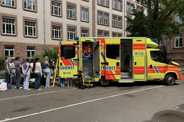 Zum Abschluss des Schuljahres empfing die Schulsanitätsdienst-AG besonderen Besuch: Am 15.7.2025 kamen zwei SanitäterInnen des Arbeiter-Samariter-Bunds (ASB) mit einem Rettungswagen (RTW) auf unseren Schulhof und ermöglichten den rund 20 Schülerinnen und Schülern, begleitet von Frau Verhoeven, spannende Einblicke in die Arbeit des Rettungsdienstes...Mehr lesen →