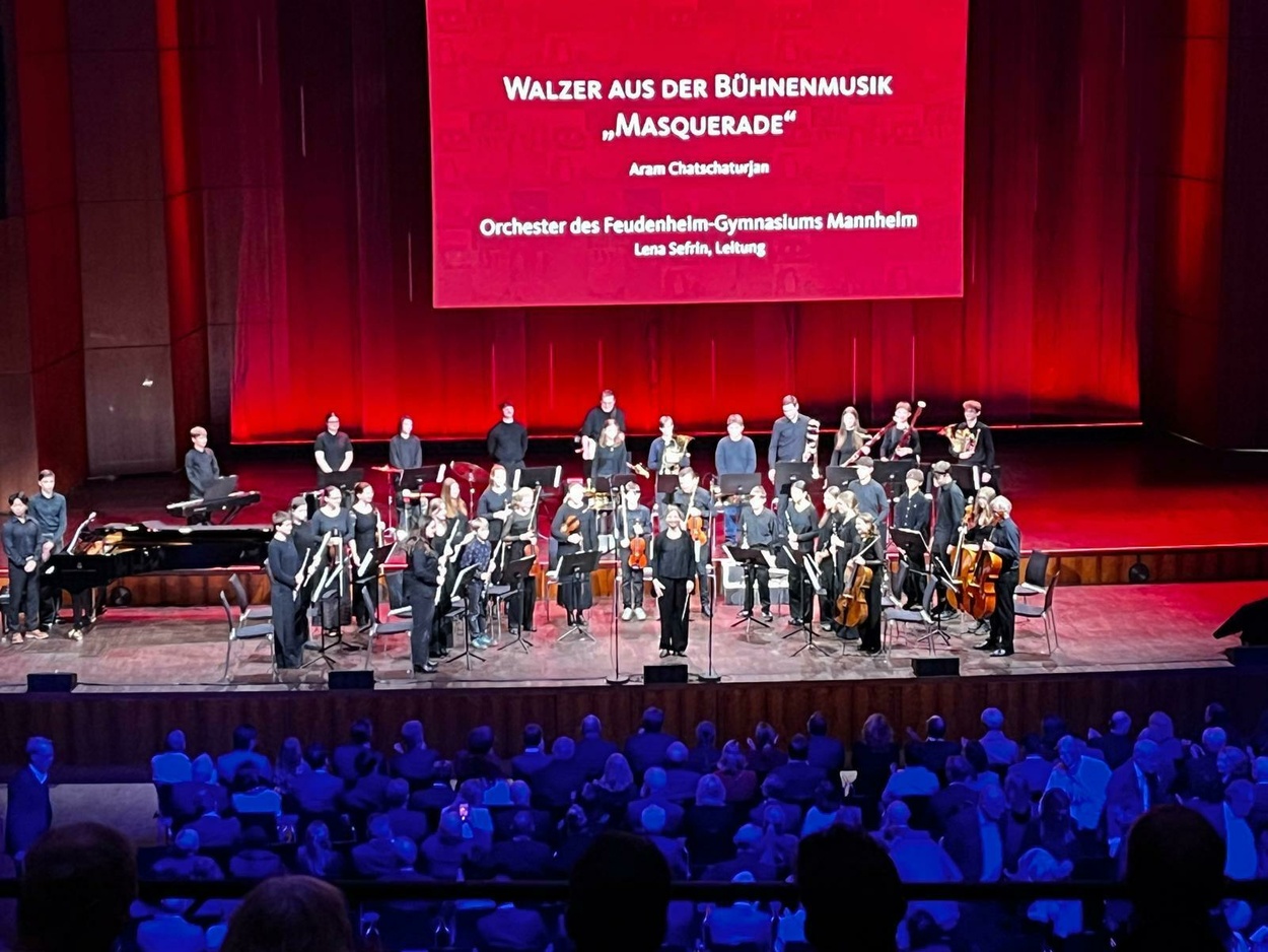 Bereits fünfmal zuvor wirkte das Orchester schon beim Neujahrsempfang der Stadt Mannheim mit. In diesem Jahr spielte es nun erstmals auf der großen Bühne des Mozartsaals im Mannheimer Rosengarten – ein besonderer Höhepunkt für das junge Ensemble. Was Lena Sefrin vor allem freute: Für diesen Auftritt wurde es von ehemaligen Schüler:innen und Lehrer:innen unt erstützt, was die starke musikalische Gemeinschaft des Feudenheim-Gymnasiums sichtbar macht.