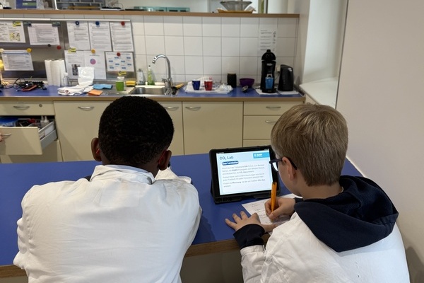 Kittel an, Schutzbrille auf und los geht das Forschen und Experimentieren im Kids’ Lab der BASF. Im Rahmen des Projekts „Smart Future“ erkundeten die Schülerinnen und Schüler der 5d Experimente zu aktuellen Themen wie Klimaschutz und nachhaltiger Entwicklung. In drei Laboren arbeiteten sie hierfür problemorientiert und mit digitalen Hilfsmitteln.Eigenständig stellten sie im CO2-Lab Kohlenstoffdioxid-Gas her und lieferten Beweise mit einem digitalen Sensor. Dabei lernten sie die Bedeutung von CO2 im Tier- und Pflanzenleben kennen.